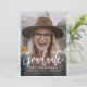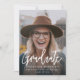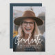 A simple modern script graduate photo announcement postcard for your high school or college graduation. Add your own stylish photo. Photo with script graduate wording, and white typography overlay on photo.