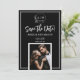 Simple Photo Minimal Monogram Save the Date Card for your wedding. Celebrate your love with this sophisticated 'Save the Date' photo card, a perfect prelude to your wedding day. The design features a deep black background adorned with a refined floral illustration monogram and your intertwined initials. This card is thoughtfully designed to include a prominent space for a personal engagement photograph, making it a unique keepsake for your guests. Announce your wedding details with grace and style, with this modern minimalist card. Set an elegant tone for the celebrations to come before guest even arrive!