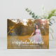 Modern girl graduation party invitation with "congratulations to our graduate" along with a single line of text for graduation details over your favourite full bleed horizontal photo. "Congratulations" is in an elegant white handwriting font. The backside has your personal message / event details. A simple design that makes your photo the main feature.