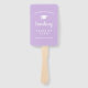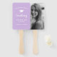 Modern graduation hand fans featuring "Congratulations" and a grad cap above the graduate's name in an elegant thick script handwriting along with the class year and school name in pastel purple over a white background. The backside has your favourite photo. You may change the background colour to any colour you wish. These hand fans are a great way to add a personal touch to your graduation party.