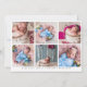 Modern stylish photo birth announcement card to introduce your sweet new baby features a large photo with handwritten style text that can be personalised with a name. The back of the card includes a collage of six (6) additional square-shaped photos and also has a classic style text for birth stats.