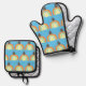 Simple Pineapple Rainbow Fruit Pattern Blue Oven Mitt & Pot Holder Set