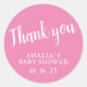 Simple Typography Pink Baby Girl Baby Shower Thank you Sticker. Cute baby shower sticker in pink and white colours - personalise the sticker with your name and date. Great for a baby shower, new baby party, baby gender reveal party or for any other occasion.