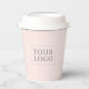 This minimal paper cup features a simple logo and text template on a blush pink background. Add your logo and customise the text with your information. You can use this personalised cup at your business place, shops, company event or, etc.