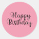 Simple Pink Modern Script Happy Birthday Classic Round Sticker