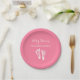 Celebrate the arrival of a new baby girl with these simple pink girl baby shower paper plates with cute newborn baby footprints. Personalise this precious pink and white design by adding the name of the mummy-to-be to the custom template areas.