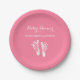 Simple Pink Newborn Footprints Girl Baby Shower Paper Plate