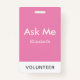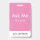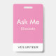 Simple Pink Personalised Volunteer Ask Me ID Badge