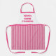 This apron with a white bib and a pink stripe pattern below comes with the default text of Mum's Home Cooking in bold letters, but it can be customised to make a great gift for anybody who enjoys cooking or baking and the colour pink.