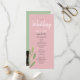 Simple, minimalist, contemporary, solid colour pink wedding program, with custom photo of the couple at the back side and modern handwritten calligraphy script.
