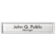 A simple plain desk name plate in classic white with a thin black border/frame around it. The border or frame can be customised in colour by editing the background colour of the desk name plate. Font type, colour and size can also be customised.