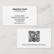 This plain white generic design business card has black text that you can edit to show the details about you and your business. Front: There are lines for your name, professional job title, business name, address, phone number, and website. Back: There's a QR code placeholder image and text you can edit to show your personalised message. (Remember to enter your Website URL for your QR code to work correctly.) All text on both sides can be edited or deleted.