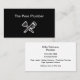 Plumbing repairman business cards in a simple design with plumber wrench and plunger graphic in the background and your text you can use to feature your name or business name on the front.