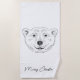 Simple Polar Bear Head Line Art Sketch With Text Beach Towel