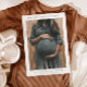 Simple Pregnancy Photo Announcement Invitation with minimal typography and photo on the front.