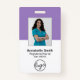 Standard light purple employee ID badge with name, title, ID number or other info and your logo below your photo. The back has your contact info and bar code or QR code. This professional design is great for a small business, hospital or any corporate business.