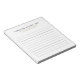 A professional lined notepad with a minimalist design. Custom name and title position role and company or custom text presented in blue and gold on a simple white background. Personalize using the fields provided or use the 'message' button to contact the designer for help.