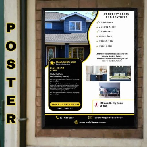Are you looking for an effective and engaging home selling strategy that will capture the attention of potential buyers? Well, this promotional poster has creative professional design and text layout that makes a good lasting impression. This is not just another piece of marketing collateral but also a powerful tool to visibly showcase your listings and turn interested buyers into closed deals. The detailed arrangement and informative content of this template allow you as a real estate agent or agency to perfectly promote the listings and highlight the home’s best features through adding captivating high-quality photos. The aesthetic navy blue and lime green colour scheme of the graphic elements and fonts add an appeal to the visual of this poster. You can also include other relevant details about contact, location, email and website which will enable clients to easily access you when they have more enquiries regarding the house, building or land property selling process.