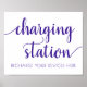 Simple phone and device power and CHARGING STATION shower, party, or reception table signage featuring a fun, casual hand-lettered script. The classic design includes a modern handlettered quote typography overlay. The lovely font with a customizable background color makes it easy to fit any theme. For other colors or matching products, please visit the JustFharryn Zazzle store, or contact the designer, c/o fharryn@yahoo.com All rights reserved. #zazzlemade