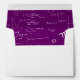 Elegant graduation envelope with personalized return address and a pattern of mathematical formulas in the inside of the flap over a purple background. Add your own information on the envelope. Perfect for high school and college graduates. Illustrated and designed by Patricia Alvarez.