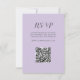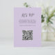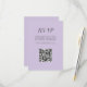 This simple wedding RSVP card features clean grey text on a soft purple background, offering a modern and elegant look. A dedicated space for a QR code allows guests to quickly access your wedding website or RSVP details, adding a touch of convenience to this minimalist design. Perfect for any contemporary wedding theme, this RSVP card combines functionality with a stylish, understated aesthetic.