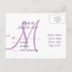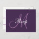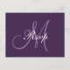Elegant, simple, stylish Wedding RSVP Postcard with a script font monogram design in shades of purple. Customise with your monogram and personal information. Elke Clarke© Contact store for different background colours.