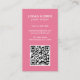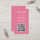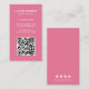 Modern vertical business card featuring a simple and minimalist style with your QR Code on the front and social media icons on the back. All design elements are in white over a girly pink background. A plain and minimal design that can be customised for any business professional.