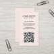 Modern vertical business card featuring a simple and minimalist style with your QR Code on the front and social media icons on the back. All design elements are in black over a blush pink background. A plain and minimal design that can be customised for any business professional.