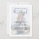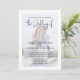 This design features a modern simple minimalist photo picture, a QR code RSVP via the website template, with online scannable scan web digital, dusty blue elegant script text, engagement photo couple white overlay, classic traditional minimal simplistic, romantic calligraphy typography font, a chic overlay vellum style design, modern simple rustic elegance romantic, with wedding details more information info