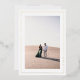 Our wedding save the date cards are the perfect way to announce your special day to your friends and loved ones. The front of the card features a stunning photo of the happy couple, surrounded by a delicate gold foil border. The simple typography adds a modern touch and makes it easy for guests to quickly see all the important details. These save the dates are a chic and elegant way to kick off the planning for your big day. They'll make a lasting impression on your guests and get them excited for the celebration to come.