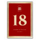 Modern Minimalist Red Rectangle Double Happiness On A Faux Matt Gold Foil Paper Background, Double Sided Chinese Wedding Table Number Card.