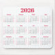Simple red and White 2026 Calendar Mouse Mat