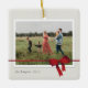Simple Red Bow Photo Christmas Ceramic Ornament