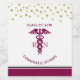 Congratulations Class of 20xx wine bottle labels. Designed with with faux gold confetti dots along the top, a stylish red caduceus symbol with the letters R N on either side. Simple minimalist design for nurse graduates.