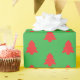 Simple Red Christmas Trees on Green Wrapping Paper