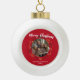 Simple red Christmas Wreath Photo Family name Ceramic Ball Christmas Ornament