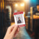 Basic photo ID badge in a vertical layout with a simple yet professional design featuring a red border on the top and bottom. The template is personalised with your logo, press publication name, employee name, and title. The bottom border has "PRESS" in large bold letters and may be changed to any title desired. The backside has your contact information and instructions for returning if found. This classic press pass is great for all news station field staff.