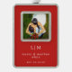 Simple Red Monogram Photo Elegant Silver Plated Framed Ornament