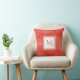Simple Red Orange Subtle Marble Modern Monogram Cushion