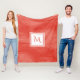 A simple subtle marble fleece blanket in orange-red with a modern white square badge that you can personalise by adding your monogrammed initial to. This is part of the Cherry Tomato Red Subtle Marble Monogram Collection.