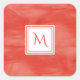 Simple Red Orange Subtle Marble Modern Monogram Square Sticker