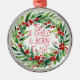Simple Red Typography Christmas Wreath Ornament , Elegant Script, ''For To Us A Child Is Born'' Green and Red Berry Floral Design, Just Like The Precious Ornaments My MOM Had Back In the Day. Designing This Piece Brought Back Sweet Memories of'' Don't Touch the Tree''!