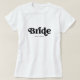 This trendy, simple t-shirt features the word "Bride" in retro black typography, along with a space for her name.