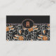 White and orange retro flowers outline on black background. Cool and simple seamless retro flower pattern. Available on other products.. Custom monogram on front and information on the back. Cool retro business card. This is a Template and it is fully customisable.