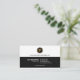 A simple design with a dual tone coloured background. The top white portion has the faux gold icon logo with its business name. At the bottom portion which contains a black grunge, houses all your card's details. A white line demarcates your name and job title on the left against your contact details on the right ; each detail is allocated a bullet point. Near the floor of the card, you have an optional slogan tagline.