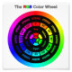 This simple RGB (Red, Green, Blue) colour wheel has hex codes, hue angle values (0-359), and colour names.