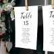 Romantic wedding seating chart cards feature stylish script and elegant font in black and white, modern and simple, great for modern simple wedding, minimalist formal wedding, traditional classic wedding.