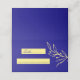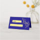 Unique simple wedding place card featuring romantic and elegant gold flowers on royal blue background