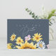 Celebrate your love amidst the vibrant beauty of summer with our Simple Sunflowers Royal Blue Opulence Floral Wedding Save the Dates. Inspired by rustic country charm, this invitation features lush greenery and bursts of sunny yellow florals, evoking the joy of a sun-kissed meadow on a striking royal blue background. With delicate wildflowers dancing around bold sunflowers, it captures the essence of a springtime romance blooming into eternal summer love, along with the delicate detail of the couple's initials set in a stylish monogram on the back. Set the tone for your special day with these save the dates, inviting guests to join you in a celebration of love amidst the enchanting allure of nature's bounty.