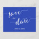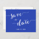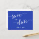 Simple royal blue and white Save the Date wedding postcards with customisable text
